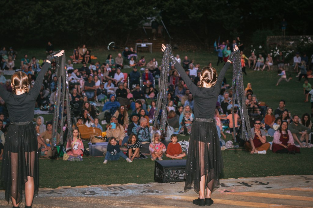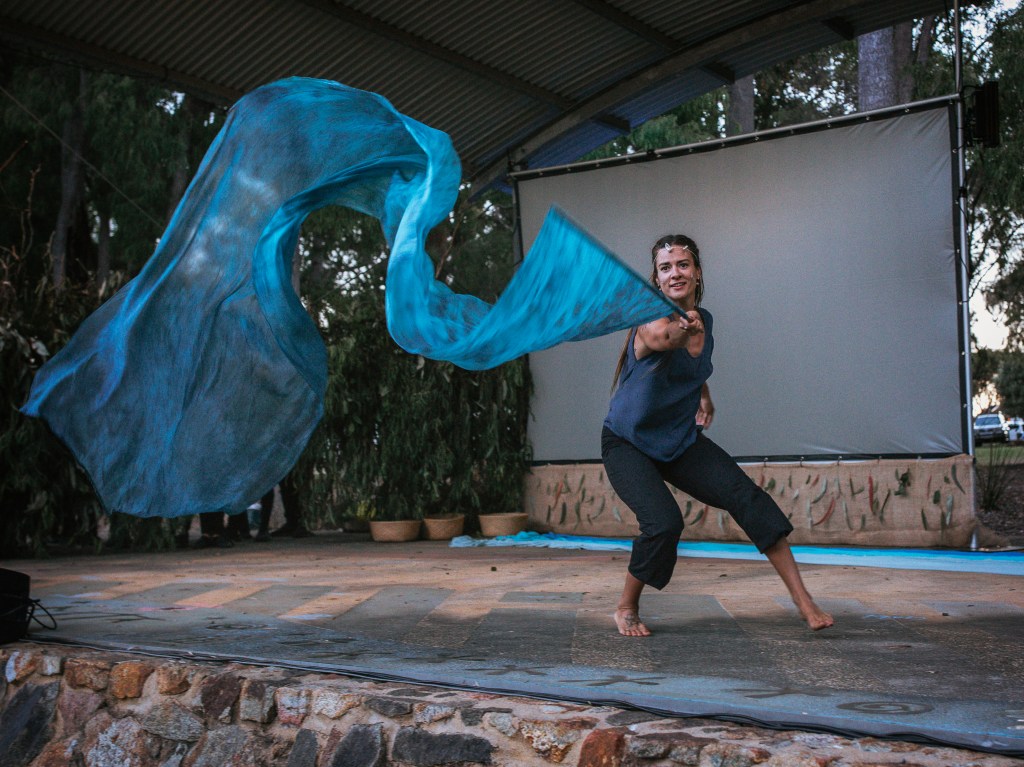 On Saturday 18th November 2023, this dreaming story was told and performed by local children to an audience of 500 people. Weaving Stories of Boodja presented a contemporary movement adaptation of the story that premiered at a free sunset community event at the Amphitheatre at Pioneer Park, Cowaramup.