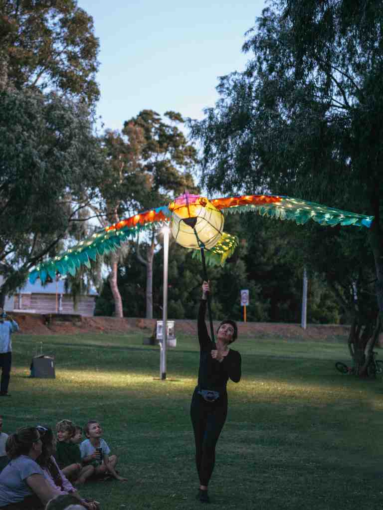 “The performance stemmed from a series of Wednesday after school workshops and school holiday intensives with children in Cowaramup and surrounds from Aug-Nov 2023. The 40 brave children who participated in the project helped turn the story of the Cowara bird into a performance. They were involved with singing & story telling as well as creating costumes, props, puppets, sound and choreography to bring this story to life.