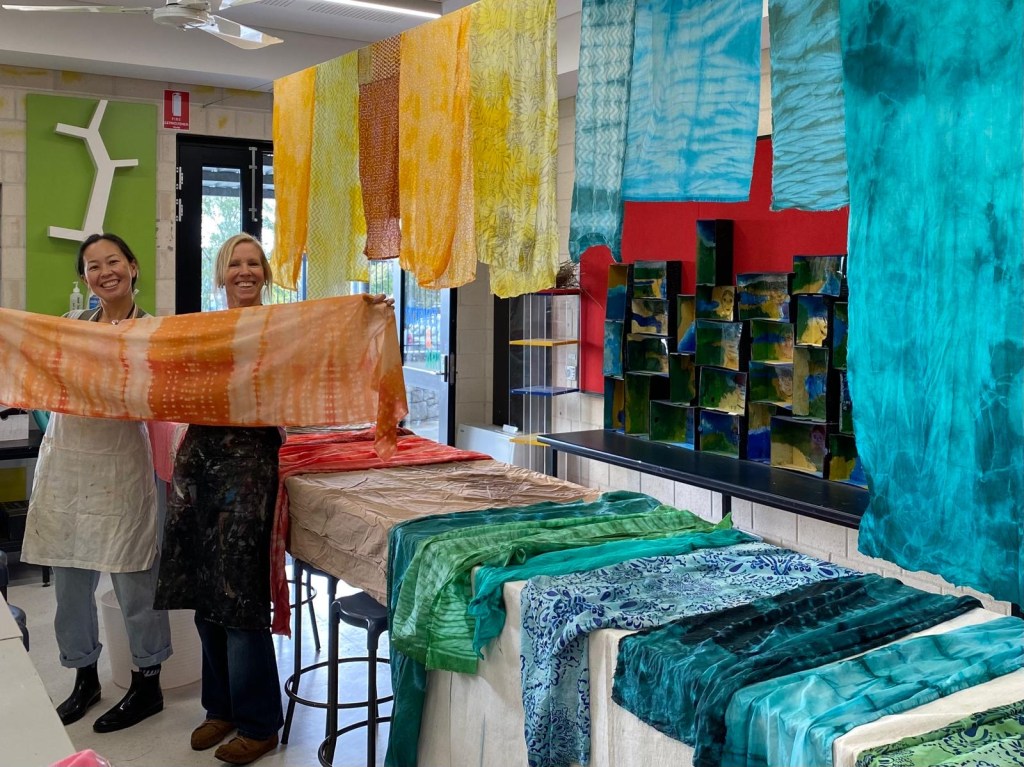 Michelle & Cara working on the grouper puppet with guru Sandy Mckendrick 2025