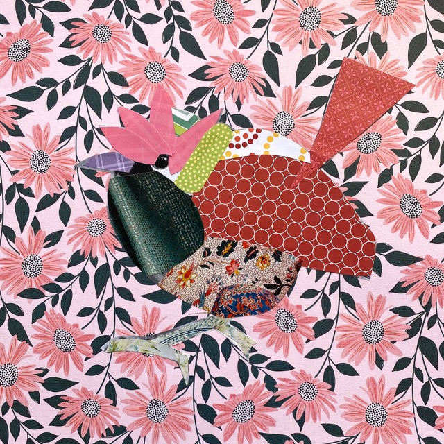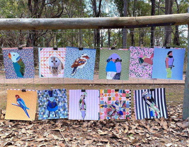 Families began working together tearing out and cutting colourful patterned paper into the shape of feathers, wings, tails. Pasting each carefully selected piece of paper one by one… the shape of many brilliant characterful native birds came to life each with their own personality.