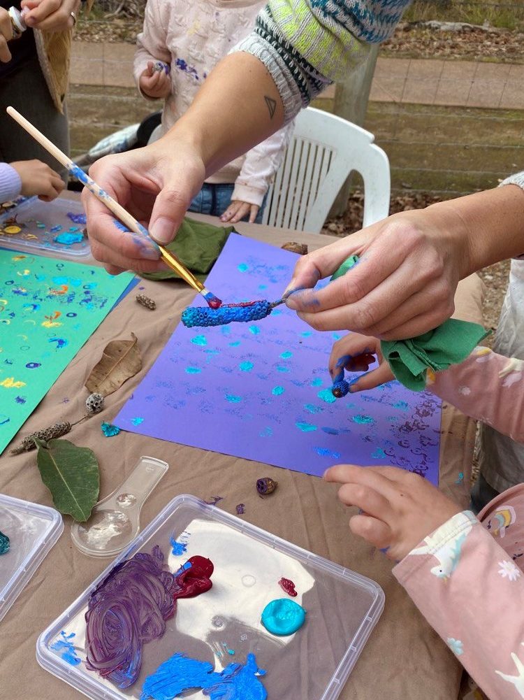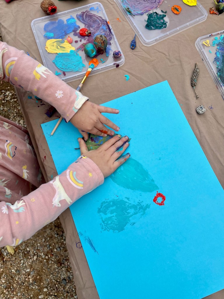 The children grinned ear to ear creating their nature patterns. Luckily, a big tub of soapy water was on hand to wash paint stained fingers before satisfied children were bundled into cars to head to home.