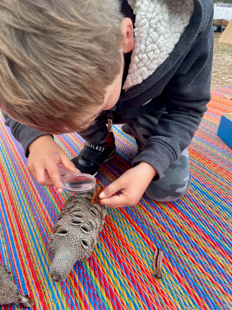 Families arrived rugged up and ready to explore the magical patterns found in our natural surrounds. Armed with magnifying glasses and curious minds, the excited children explored different native nuts, leaves, feathers and insect wings.