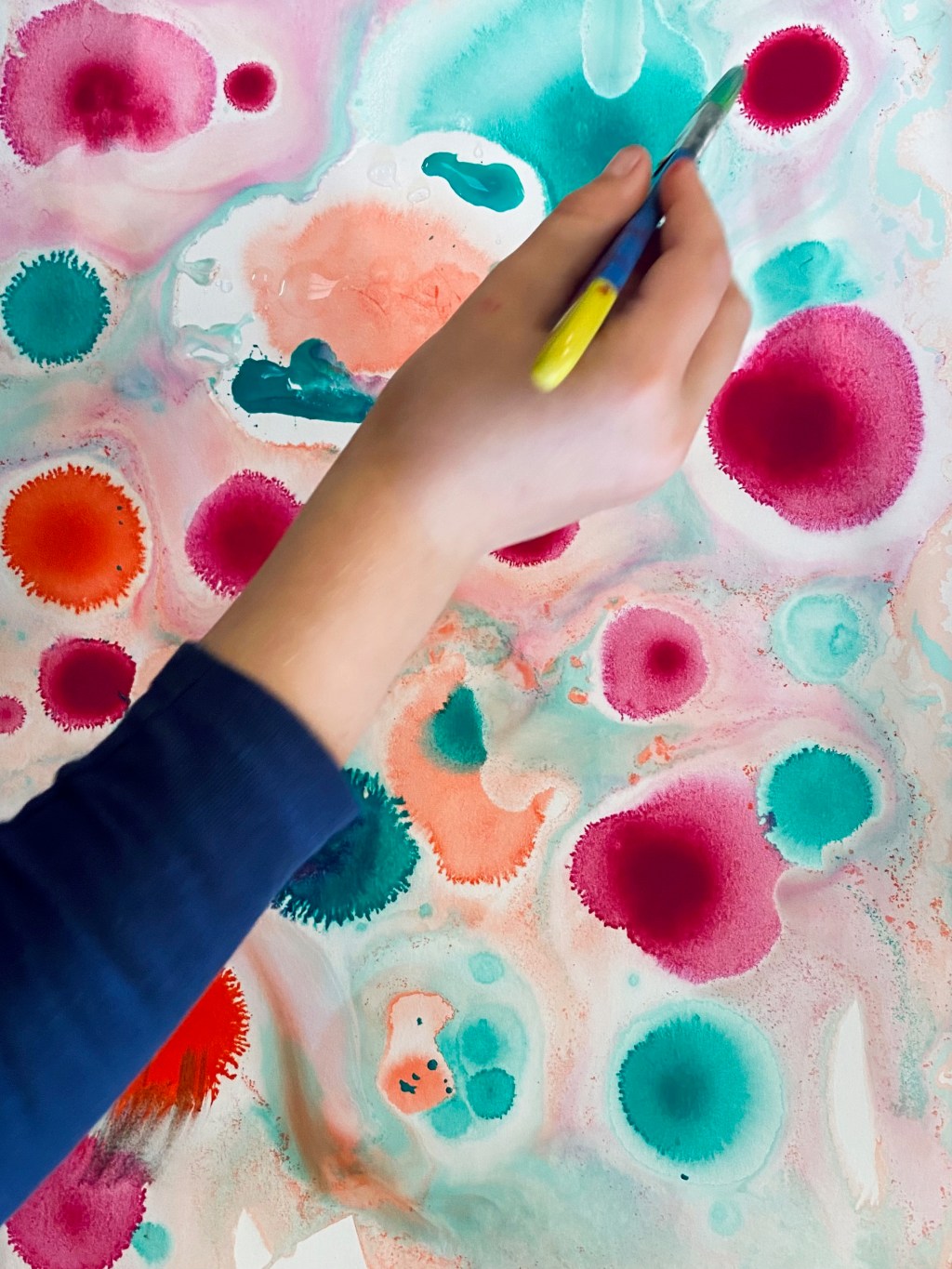 It is always so wonderful to watch what little creatives make with a blank piece of paper and some colourful liquid acrylic paints. We always knew it was going to be a messy one, but also a lot of creative fun!!