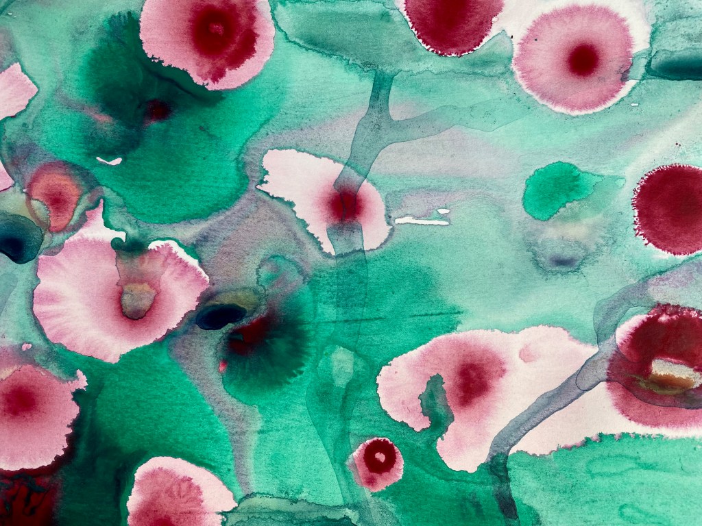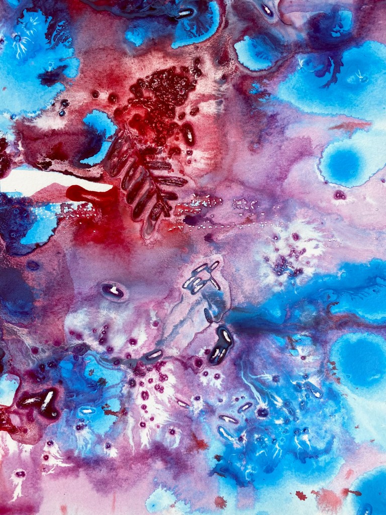 The first step of the process was to paint our paper with a nice thick layer of water. Then using pipettes, we dropped colour by colour onto our page. Trying to select colours which would complement each other as they dispersed and morphed into each other. It is a fun process to explore as there is always that element of surprise on how the paints will blend together onto the paper.