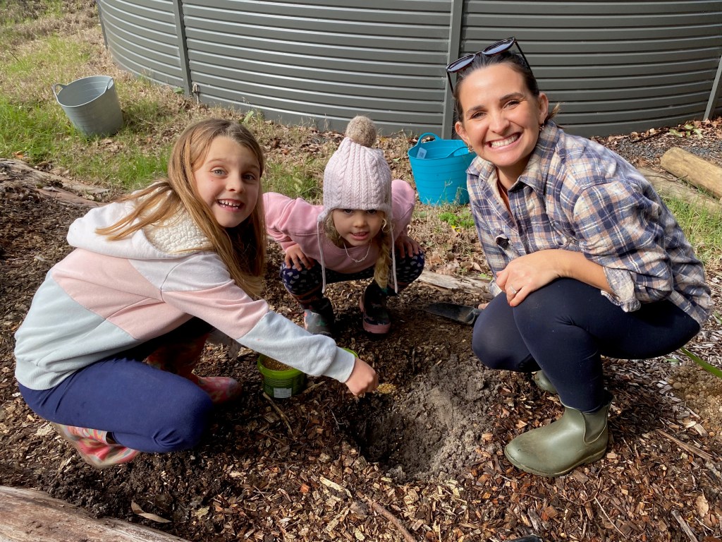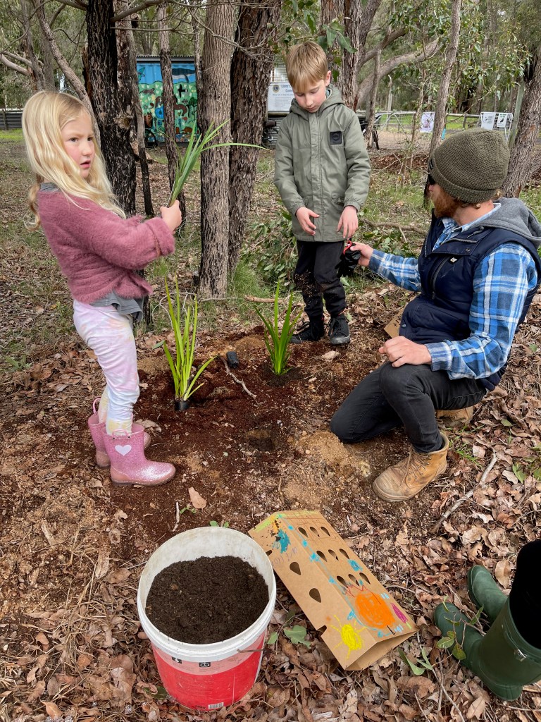 After digging into the soil, adding some native fertiliser and water crystals, little hands worked with their parents to enjoy planting their chosen native plant into the ground.