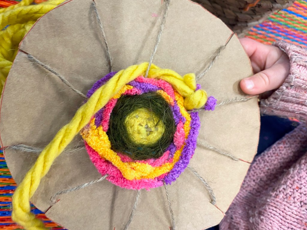Today’s activity was bird nest making using circular weaving.