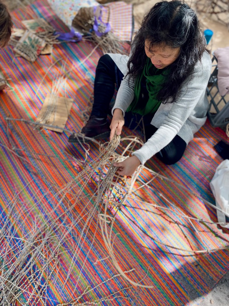 Weaving large animal sculptures was new to both of us, so we invited local Artist Cynamon Aeria to join us on this creative pursuit to help guide us with this part of our project.